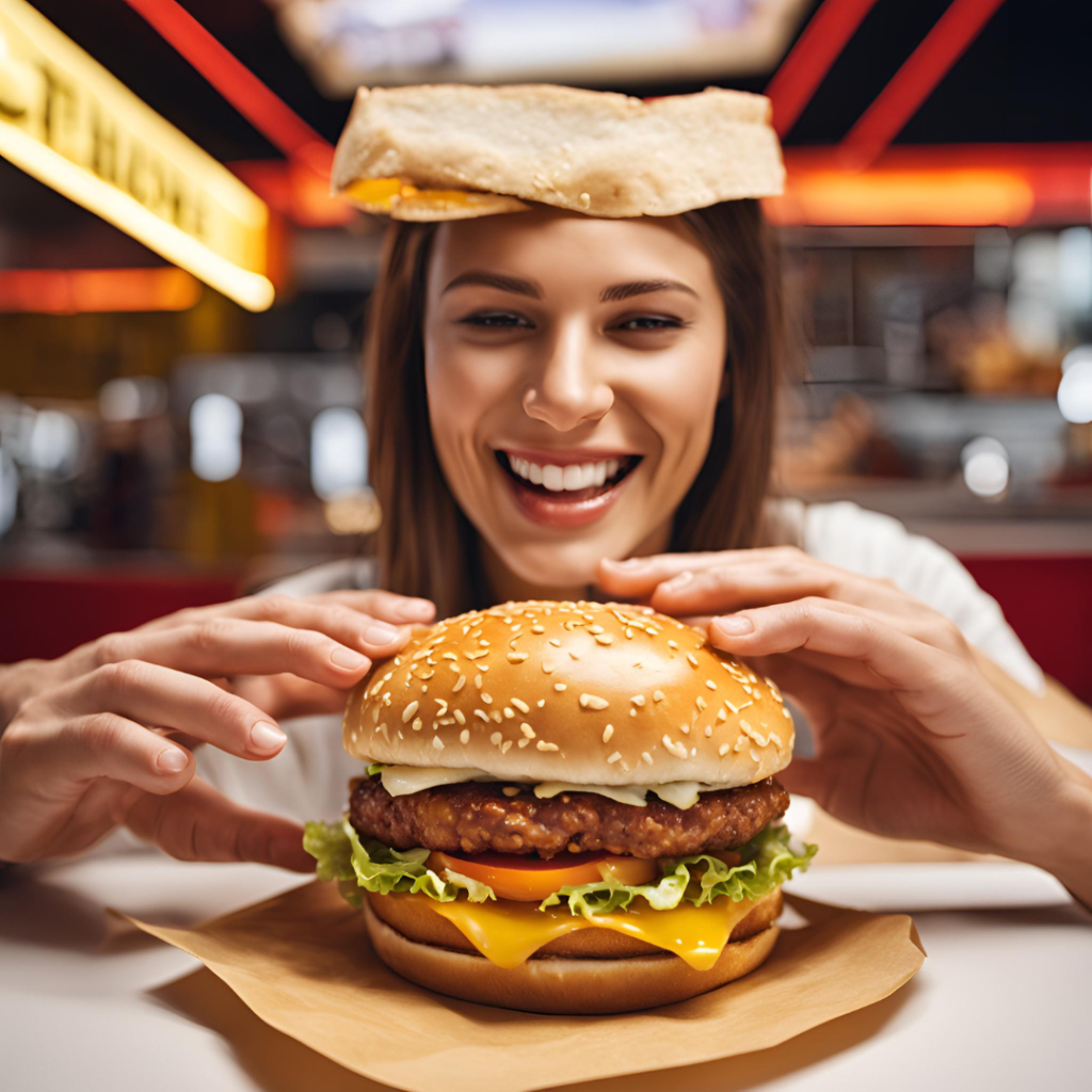 Burger? Jest. Robienie wszystkiego po swojemu z naleśnikiem na głowie i dodatkowymi palcami u dłoni? Jest. Jakby przypisać tej grafice jakieś hasło wyśmiewające AI, ale opiewające jakość burgerów w Burger Kingu to nawet by się to spinało. Może jako post na sociale. Daję tu 4+!