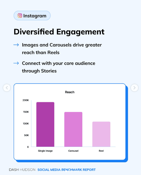 Dash Hudson w swoim badaniu przedstawił, że obecnie pojedynczy obrazek ma większy zasięg niż interaktywne formaty. Tu trochę info.