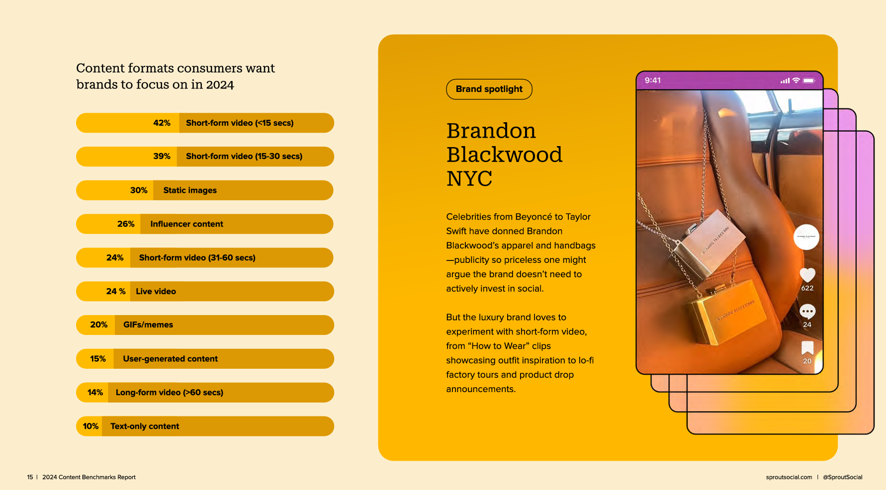 A tam, przecież to badanie na marketerach. A jednak dla odbiorcy końcowego statyki są też dość ważne, bo zajmują trzecie miejsce w badaniu Content Benchmark Report (też od Sprout Social). O wiele wyżej niż na przykład relacje live czy dłuższe video.