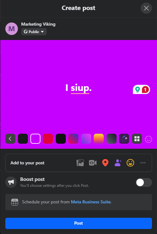 Po usunięciu grafik wracacie do kroku 1 i możecie stworzyć post z tekstem i kolorowym tłem. Zatem klikacie na tła, dodajecie tekst i zaraz stanie się magia. Wystarczy, że klikniecie przycisk postowania.