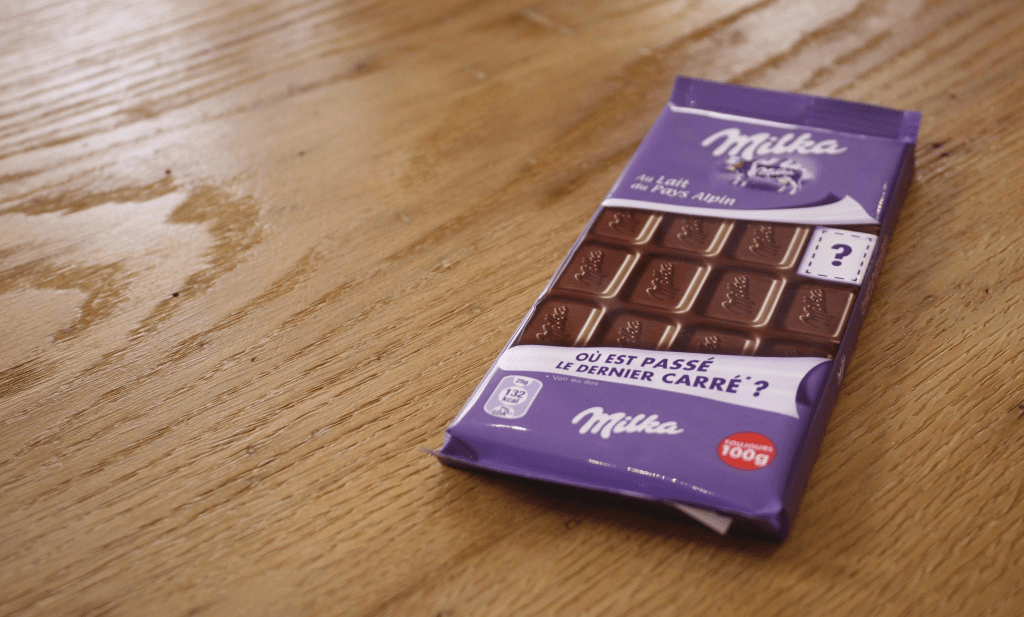 Milka i „Ostatnia kostka” to opowieść o tym, że robi się trochę niezręcznie, gdy ktoś sięga po ostatni kawałek i mógłby wyjśc na łakomczucha. Zatem marka wypuściła limitowaną edycję opakowań, gdzie nie było tej ostatniej kostki. Można ją było przekazać komuś, na kim nam zależy.