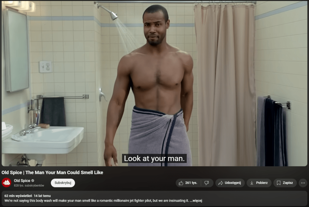 Old Spice i kampania „The Man Your Man Could Smell Like”, to ikoniczna już seria absurdalnych reklam w których marka pokazywała jak pachnie „prawdziwy” facet, taki o którym kobiety marzą. I co ciekawe to była kampania właśnie bardziej do kobiet (one często odpowiadają za zakupy kosmetyków w domu), ale też aspiracyjna do mężczyzn.