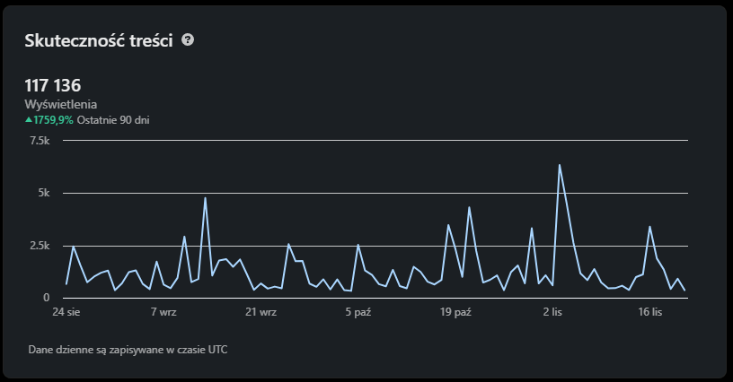 Ile wrzuciłem w reklamę? Całe 5 złotych, żeby sprawdzić jakie stawki uda się wykręcić. A tak, to prawie pół miliona impresji moich treści. Dobra, można się przyczepić, że swego czasu uzbierałem jakieś 13 000 obserwujących na profilu, ale on też był martwy przez kilka lat praktycznie. Także odsypałem się całkiem fajnie.