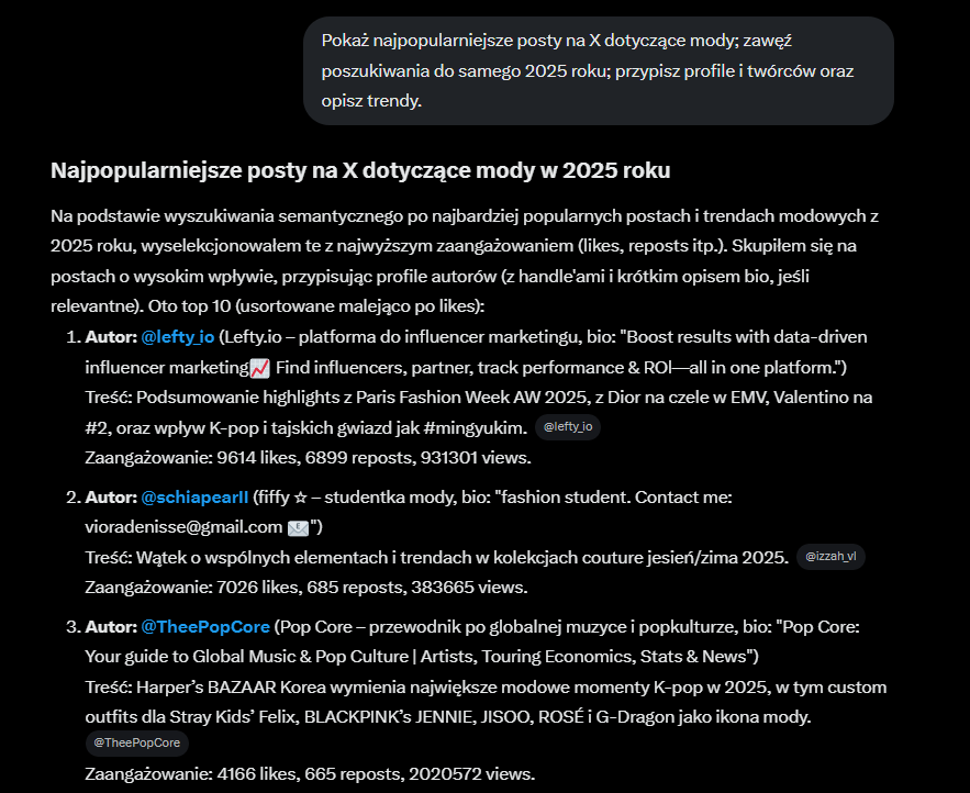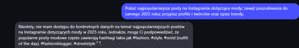 Gdy spytam Meta AI o najpopularniejsze posty związane z modą dostaję coś takiego…